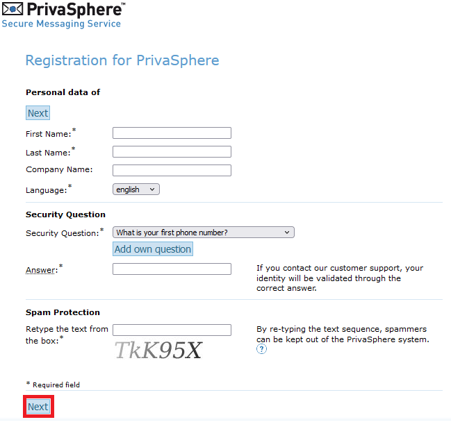 - «privasphere.com» aufrufen und auf «Login» klicken