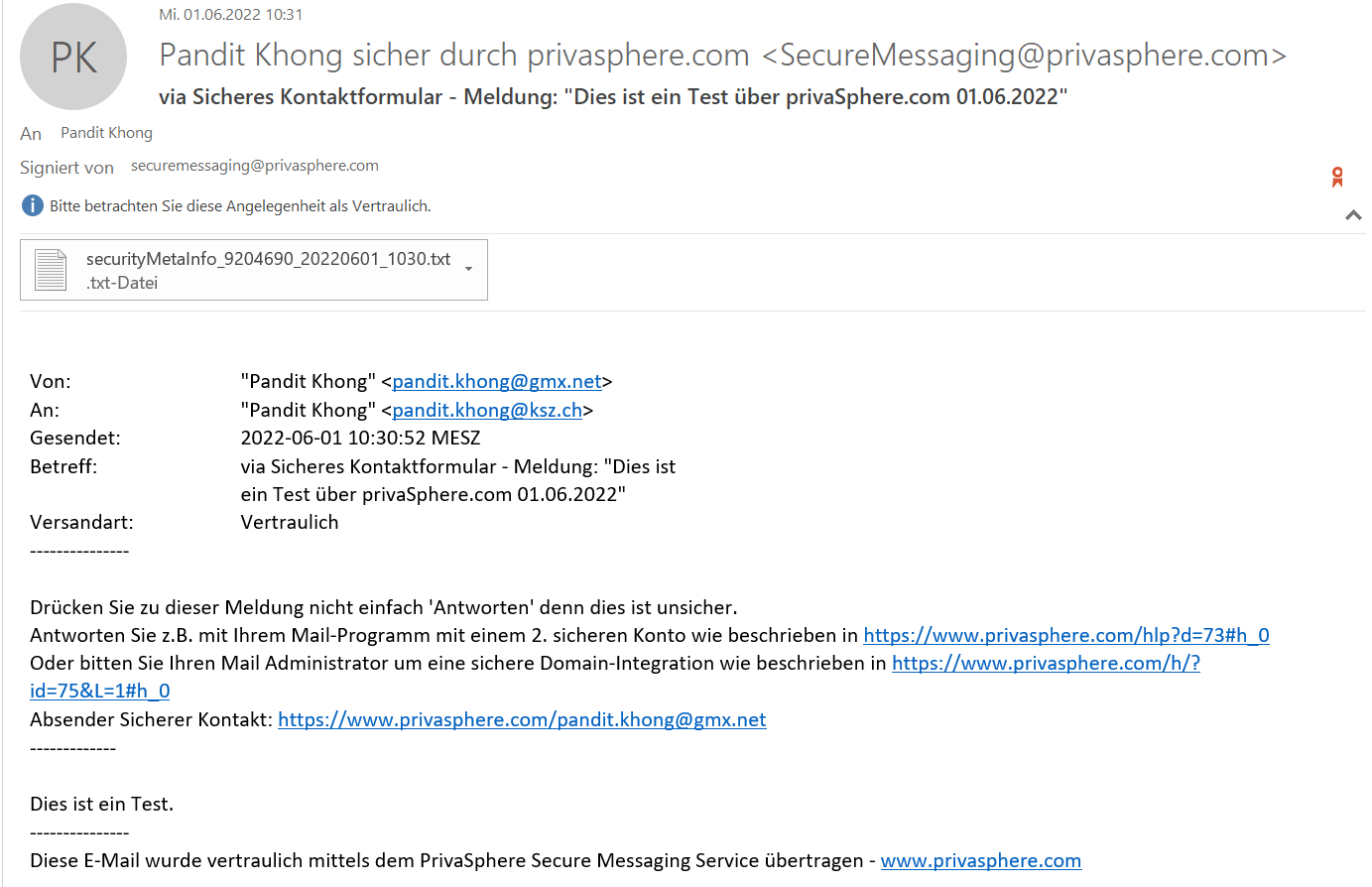 1. Vertrauliche E-Mail von der Firma PrivaSphere können auf zwei Arten empfangen werden.