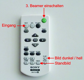 - Bild ist eingefroren. Freeze-Taste auf Beamer Fernbedienung drücken.