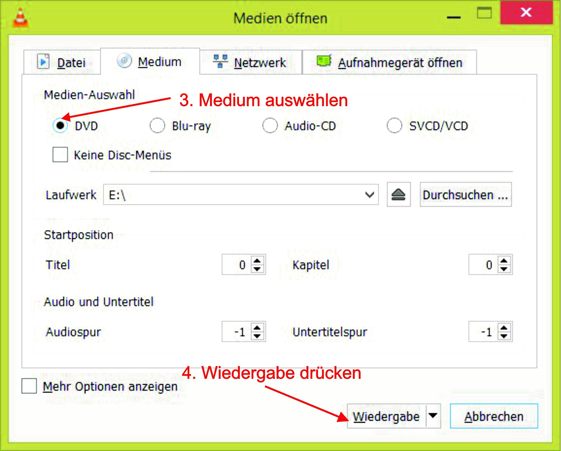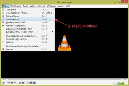 - VLC Media Player unter Start / Alle Programme / Multimedia öffnen