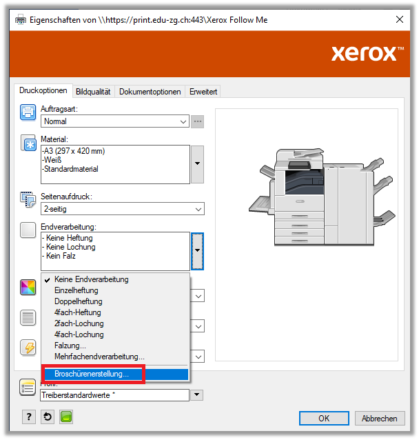 - Endverarbeitung: auf «Broschürenerstellung» klicken