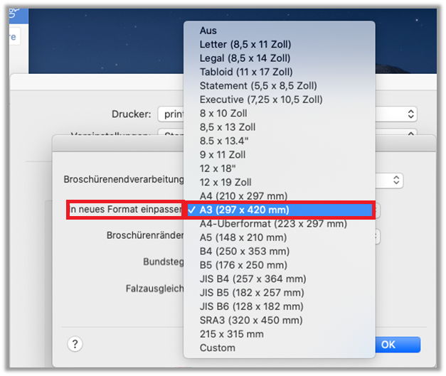 - In neues Format einpassen: «A3 (297 x420 mm)» wählen
