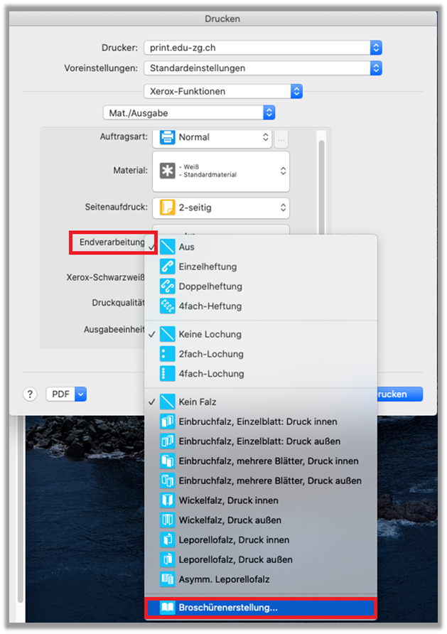 - Endverarbeitung: «Broschürenerstellung…» wählen