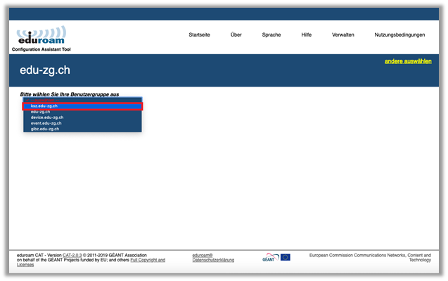 Wählen Sie „ksz.edu-zg.ch“ als Benutzergruppe aus