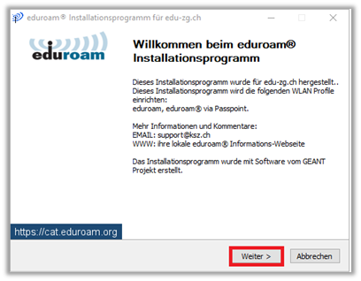 Wenn unter Punkt 2 "Verbinden von Windows 10 mit Eduroam" nicht funktionieren sollte, kann eine Installation mit CAT (Configuration Assistant Tool) vorgenommen werden.