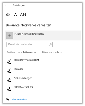 Die beiden „eduroam via Passpoint“ und „eduroam“ Netzwerke wurde hinzugefügt.