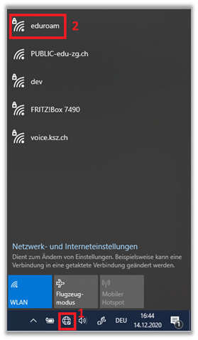 Nun sind sie mit dem eduroam Netzwerk verbunden.