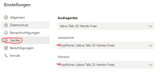 - "Geräte" auswählen und auf "Jabra" stellen: