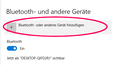 - Bluetooth oder anderes Gerät hinzufügen anwählen.