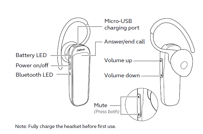- Vor dem ersten Gebrauch sollte Jabra Talk 25 mit einem Micro-USB-Ladekabel geladen werden.