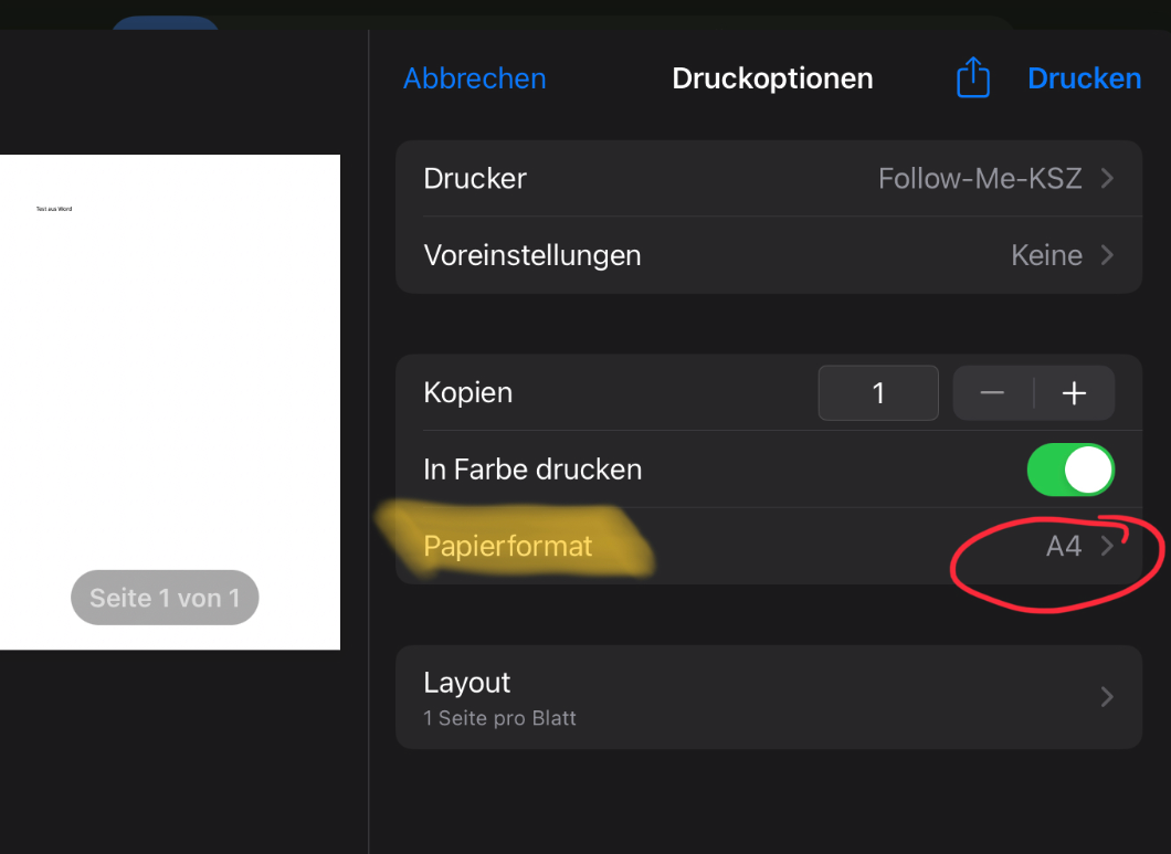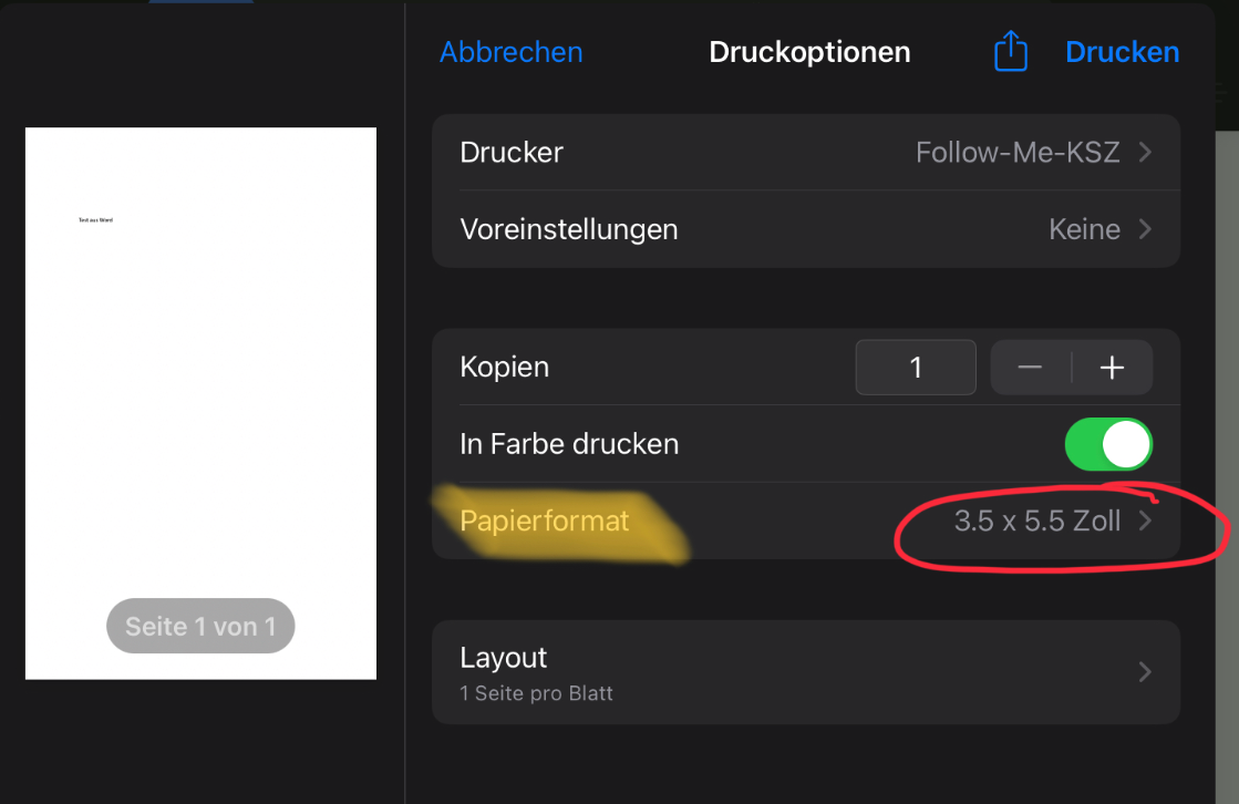 - Achtung Papierformat muss zwingend geändert werden.