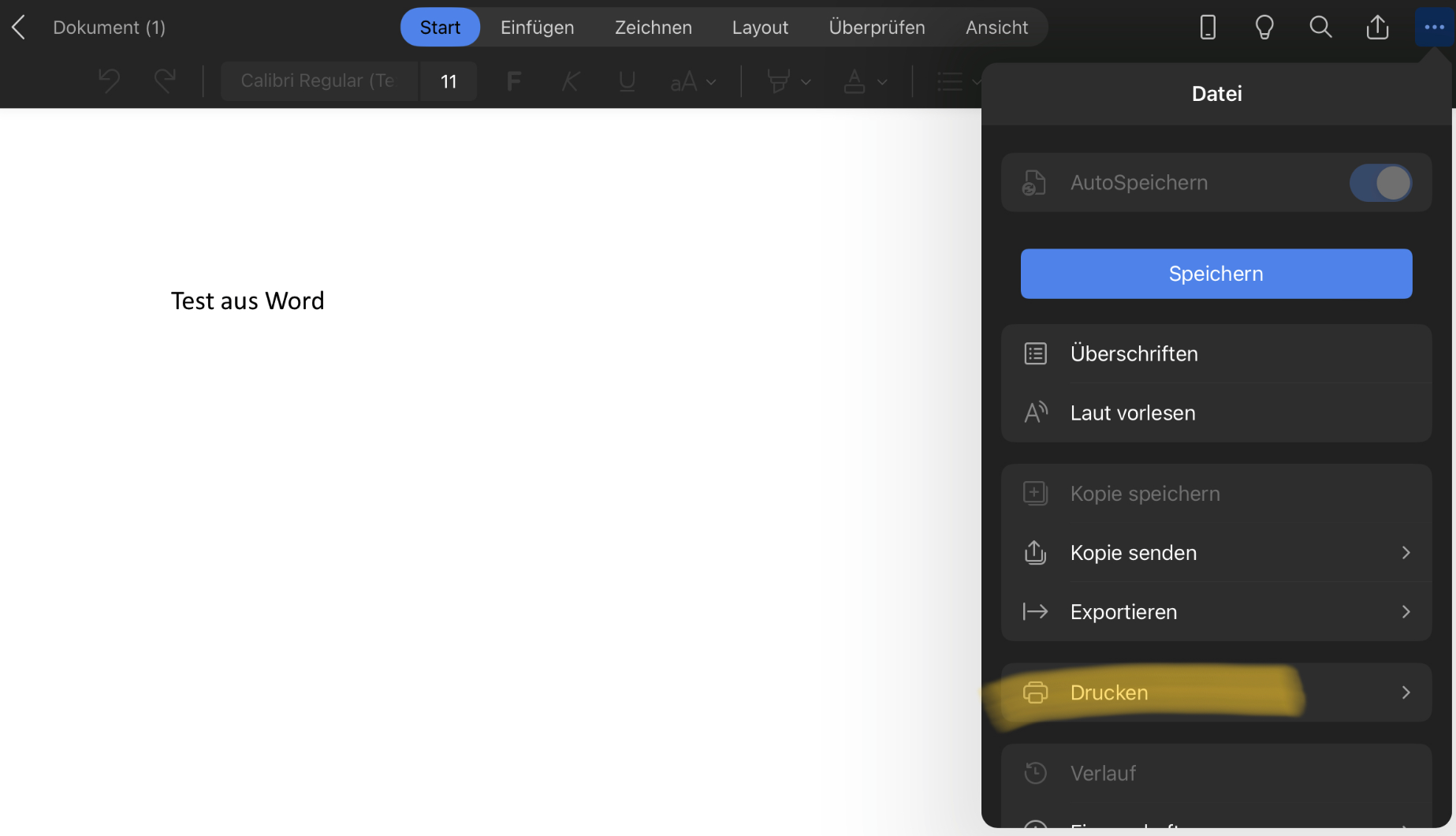 - Aus Anwendung (Beispiel Word) drucken anwählen.