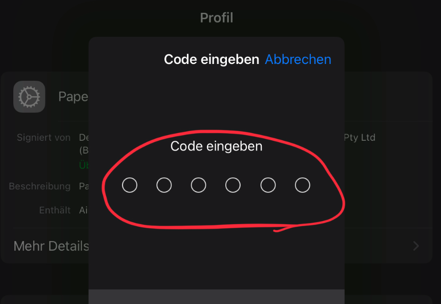 - Code vom Ipad eingeben