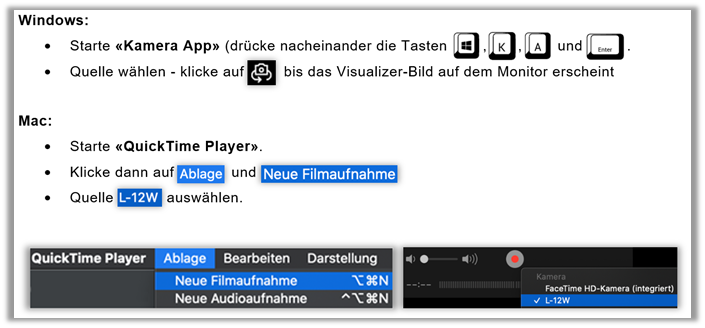 - Visualizer-Signal wird über USB-C auf das Notebook übertragen. «Bedienung» siehe unten