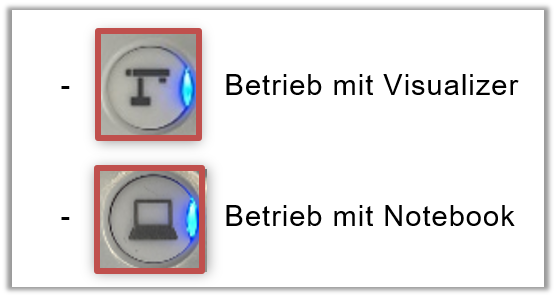 - Umschaltung zwischen Notebook / Visualizer-Signal: