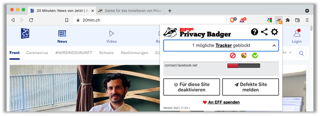 - Nutzen Sie folgenden Link um «Privacy Badger» Add-On zu installieren:
