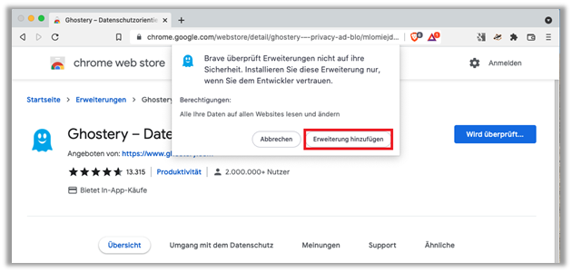 - Klicken Sie nun auf «Erweiterung hinzufügen»