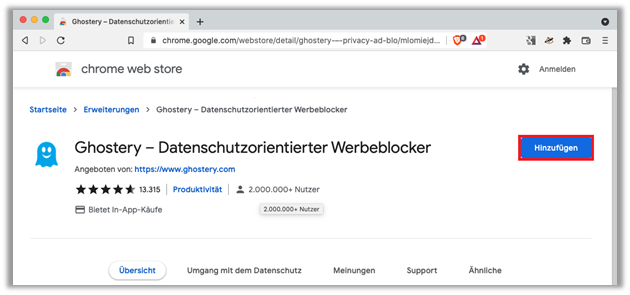 - Nutzen Sie folgenden Link um «Ghostery» Add-On zu installieren: