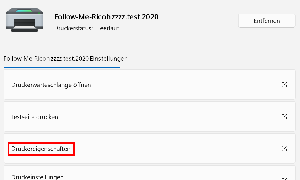1. Klicke nun auf "Druckereigenschaften"