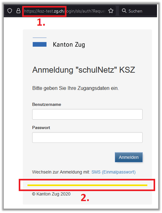 1. Die URL der Testumgebung lautet: https://ksz-test.zg.ch.