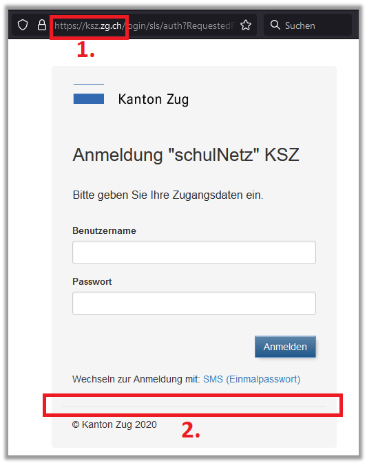 1. Die URL der normalen Umgebung lautet: https://ksz.zg.ch.