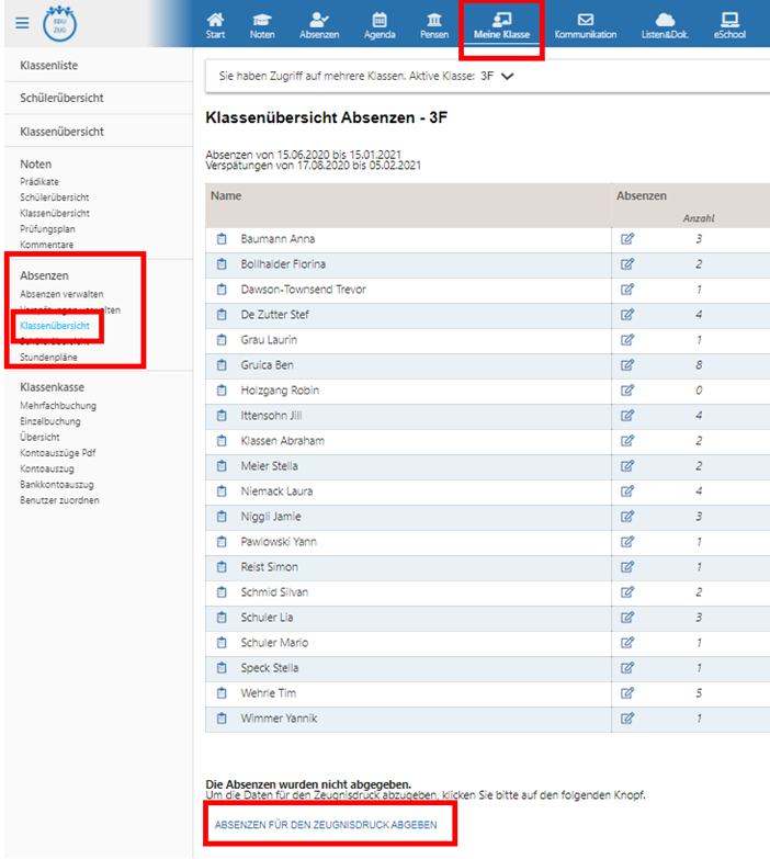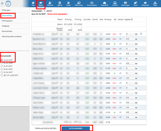 Semesterende: Noten- und Absenzenabgabe Notenabgabe durch FachlehrpersonenAbsenzenabgabe durch Klassenlehrperson