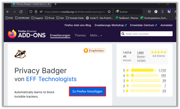 - Nutzen Sie folgenden Link um «Privacy Badger» Add-On zu installieren: