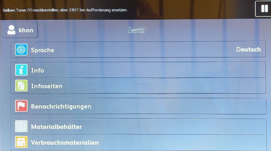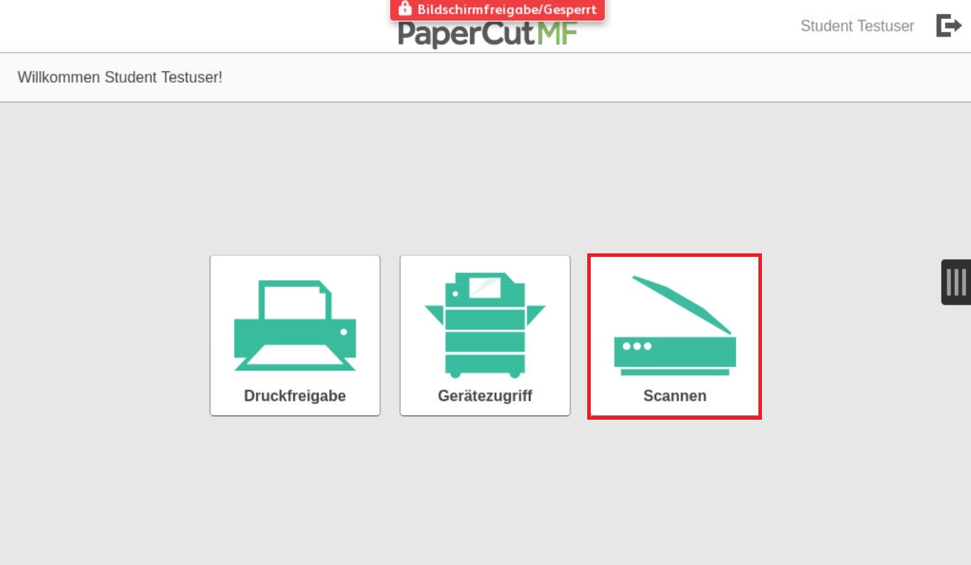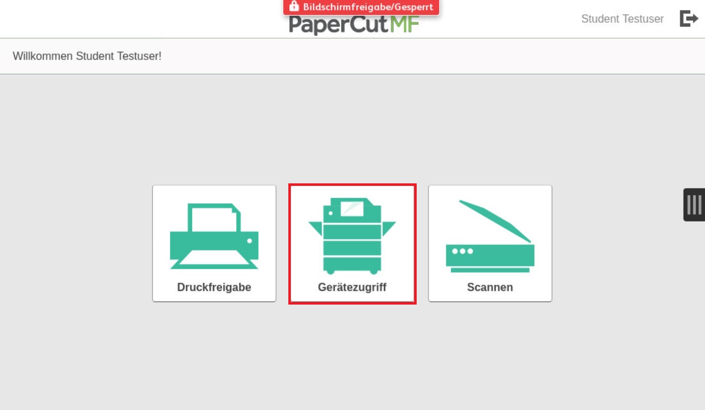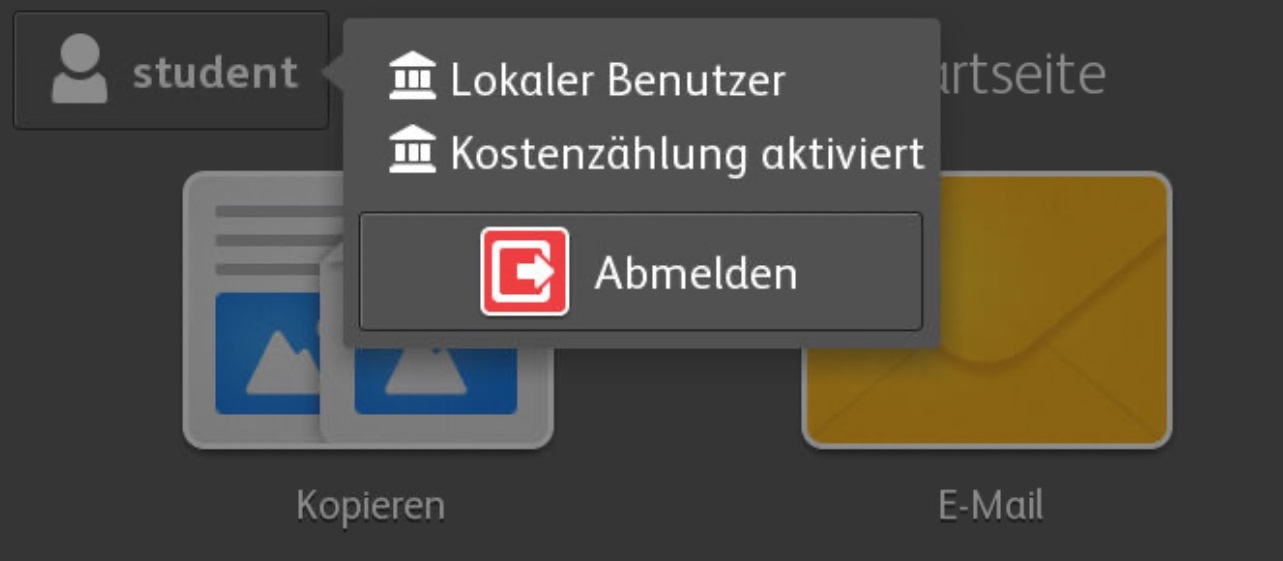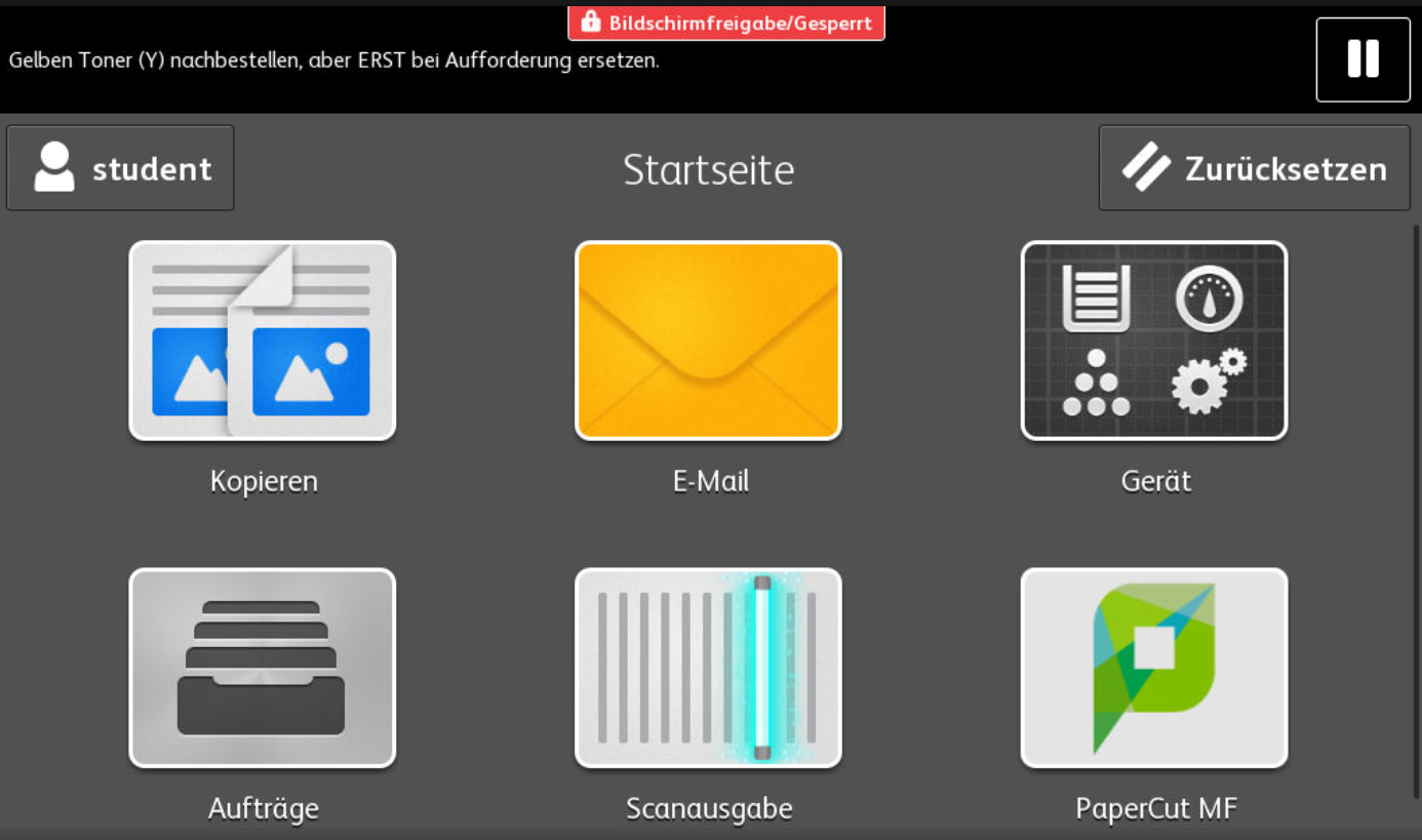 Melden Sie sich wie bis anhin mit Ihrem Kürzel, Ihrer Karte oder Ihre Schlüssel am Drucker an und das "Begrüssungsbildschirm" erscheint.