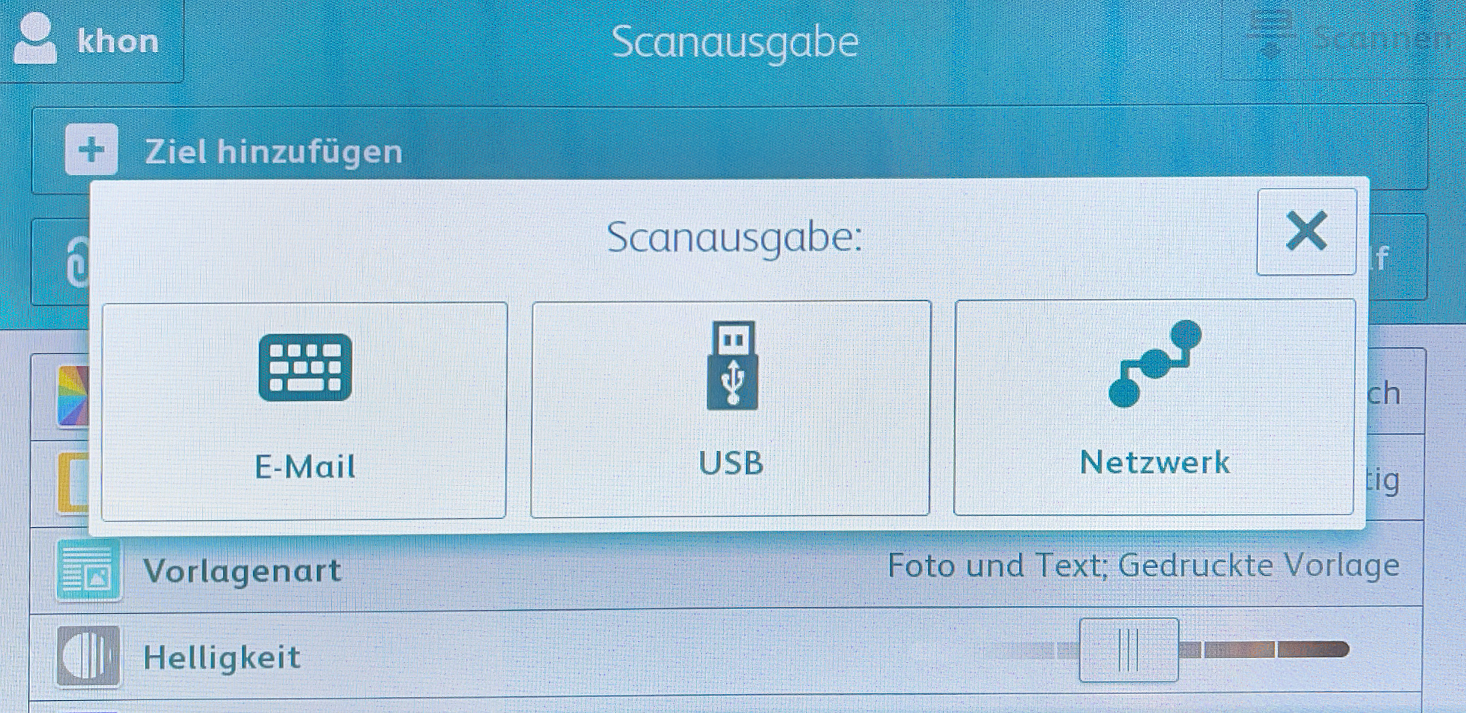 Wenn Sie das Icon "Scanausgabe" gewählt haben, kommen Sie auf diesen Bildschirm: