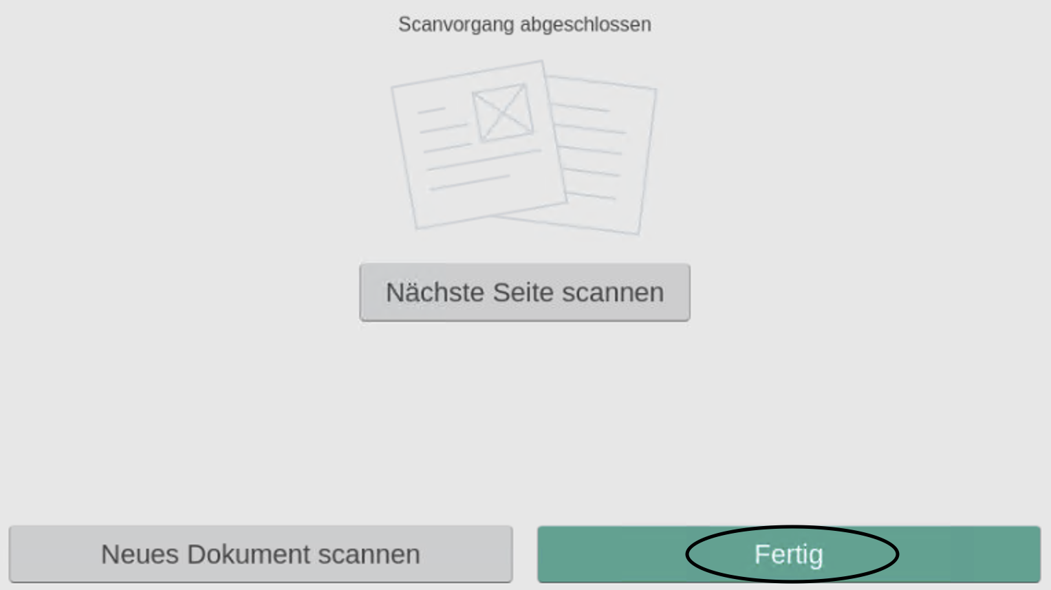 - Wähle Scannen. Folgender Schirm erscheint: