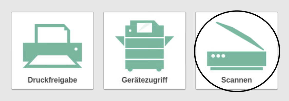 - Starte den Drucker mittels Schlüssel, Karte oder Eingabe von Benutzername und Passwort. Dann siehst du folgendes Bild: